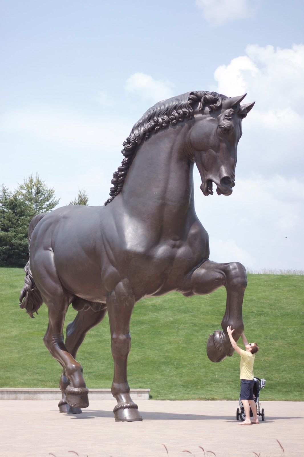 On Sunday we woke up and went into downtown Grand Rapids. We went to a cathedral and a famous church first. I love looking at the architecture of old churches. One was having a service and we listened in for a little bit. The downtown area is really beautiful. There are so many well designed old buildings and small parks. It just seemed like it was really well maintained. There are so many churches too. I swear every corner had a church. After that we went to go see La Grande Vitesse. I wasn't expecting it to be so big, but it is really decent sized. Then we headed to church at a ward in Grand Rapids. After that we spent pretty much the rest of the day at the Frederick Meijer Gardens. This place was so big. It really does take about the whole day to see everything. It is a sculpture garden. It had the most adorable children's play area with a water area, senses garden, tree house and lots of activities and fun things for kids to do. I really want to bring Vi back when she is a little older because I think she would just love it. We saw so many cool statues and a lot of really strange ones. It was a good amount of walking and it was a pretty hot day but the girls did great. After the garden's we went and saw the Mayer May house that was designed by Frank Lloyd Wright. Thanks to my dad I am a pretty big sucker for Prairie style arts and crafts homes. It is in the historic district of Grand Rapids. Mike and I spent another half hour or so driving around those streets seeing all the old homes. I loved it! It was a really fun day. Then from there we drove to Ludington where we spent the night.