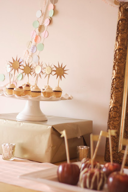 I had been planning and slowly working on things for a few weeks. So luckily it wasn't too bad. I kept thinking, oh maybe we won't really do a party and just keep it simple. I just couldn't do it! I seriously love parties way too much. Since I don't live near family I never really get to throw parties and I haven't done a wedding since December. So I figured for her first birthday I would make it special(and my own selfish reasons). I debated back and forth a lot on if it should be more of all mine and Mike's friends or if it should be more about Vi. We went with Vi. We decided to just invite the babies that she plays with and knows. So we kept it on the smaller side and got to see all these little babies who have been together since they were born. I loved it. We moved our ottoman out and just brought out all the toys for them to play with. I made salted caramel cupcakes. They are so good. They are seriously addicting. I made caramel apples and mini pumpkin donuts with a cinnamon sugar glaze. The theme was " You Are My Sunshine". My mom sang that to us all the time when we were little and we sing it to Violet often. So I made little suns to go in the cupcakes and I made the gold sign with the song lyrics out of gold foil paper. I'm not a super bright color person, so I went for more of a pastel and gold vibe. I made the paper garlands that hung on the wall and just added in some velvet rick rack. I made a little cloud pillow and some goody bags for her friends that said "when skies are grey". Inside was a little apple sauce squeeze pouch and a party hat for everyone. Of course Vi loved getting to attack her cake and we loved getting to celebrate her and her big first year of life.